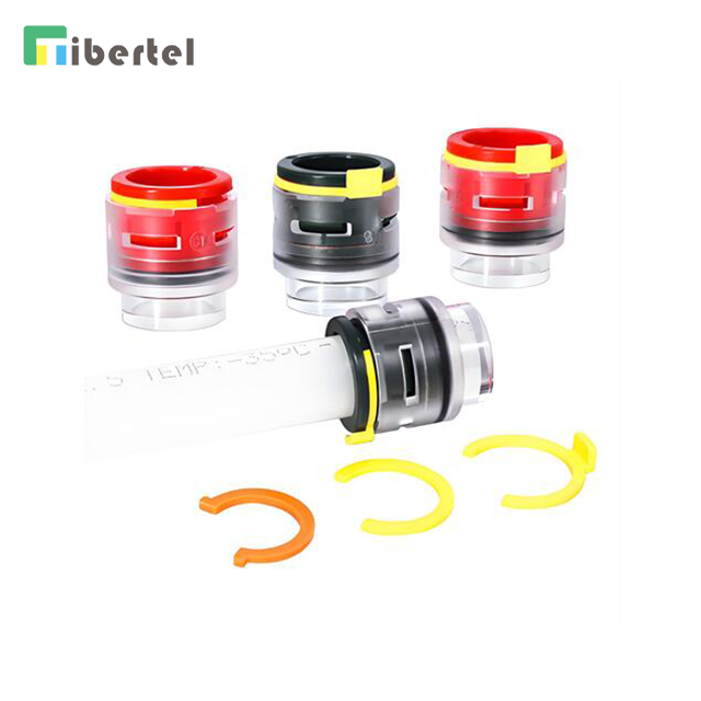The Micro Duct End Caps TJ06FPFxx serious is suitable for the Pipe made from PE. Nylon and Polyurethane. Contains the components of Button(POM) , Card(POM), Spring sleeve(OPM)/Zine parts(Zine), Circlip(SUS31/304), Retaining ring (POM) , O-ring(EPDM)/Seal ring(EPDM) and Plastic shell(PC).